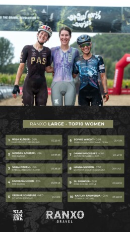 Klöser, however, was unstoppable. With a time of 5h29m41s, she soloed to a double crown: Ranxo Gravel victory and the Gravel Earth Series title. Behind her, Migoń and Schreurs battled for fourth, with the Polish rider taking the sprint to secure second overall, while Schreurs concluded her season in fourth place.